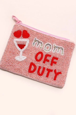 "Mom Off Duty" Seedbead Coin Purse with zipper closure.